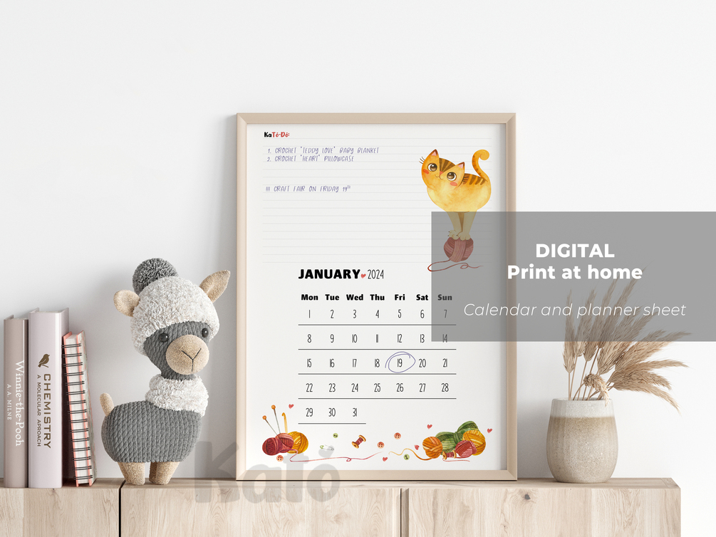 Print-at-home calendar 2024 with crochet project planner sheet