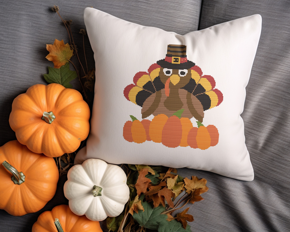 Thanksgiving turkey, pumpkin embroidery stitch pattern, Thanksgiving cross stitch pattern, cross stitch PDF pattern file, digital download.
