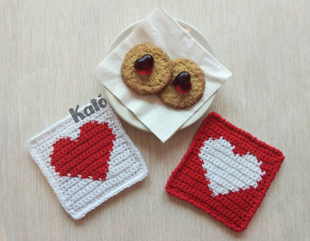 Drink coaster crochet pattern, heart pattern - Sweet moments [Digital crochet pattern]